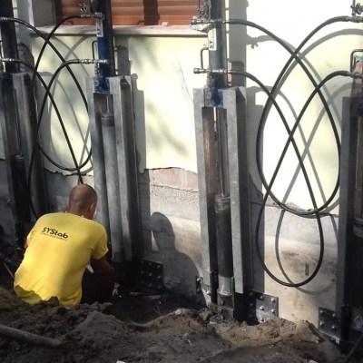 Per stabilizzare un edificio con cedimento d’angolata si può optare per i micropali precaricati presso-infissi Systab con speciali martinetti idraulici a contrasto con la struttura esistente e collega…