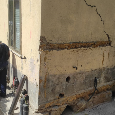 Cedimento d’angolo abitazione, il recupero con micropali precaricati