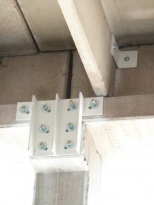 - realizzazione di connessioni metalliche fra gli elementi strutturali di copertura (tegoli-travi e travi-colonne) cui affidare l’intera azione sismica;